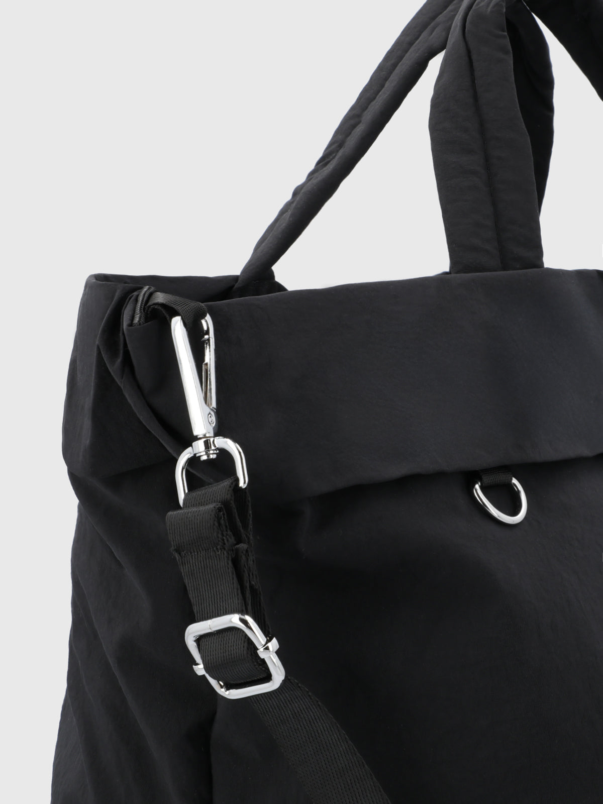 Bolso de forma cuadrada con asas para llevarlo en la mano o correa acolchada para colgarlo en el hombro. Cuenta con varios compartimientos interiores , y un compartimiento donde podras dejar la ropa post entrenamiento. Cierre con broche.