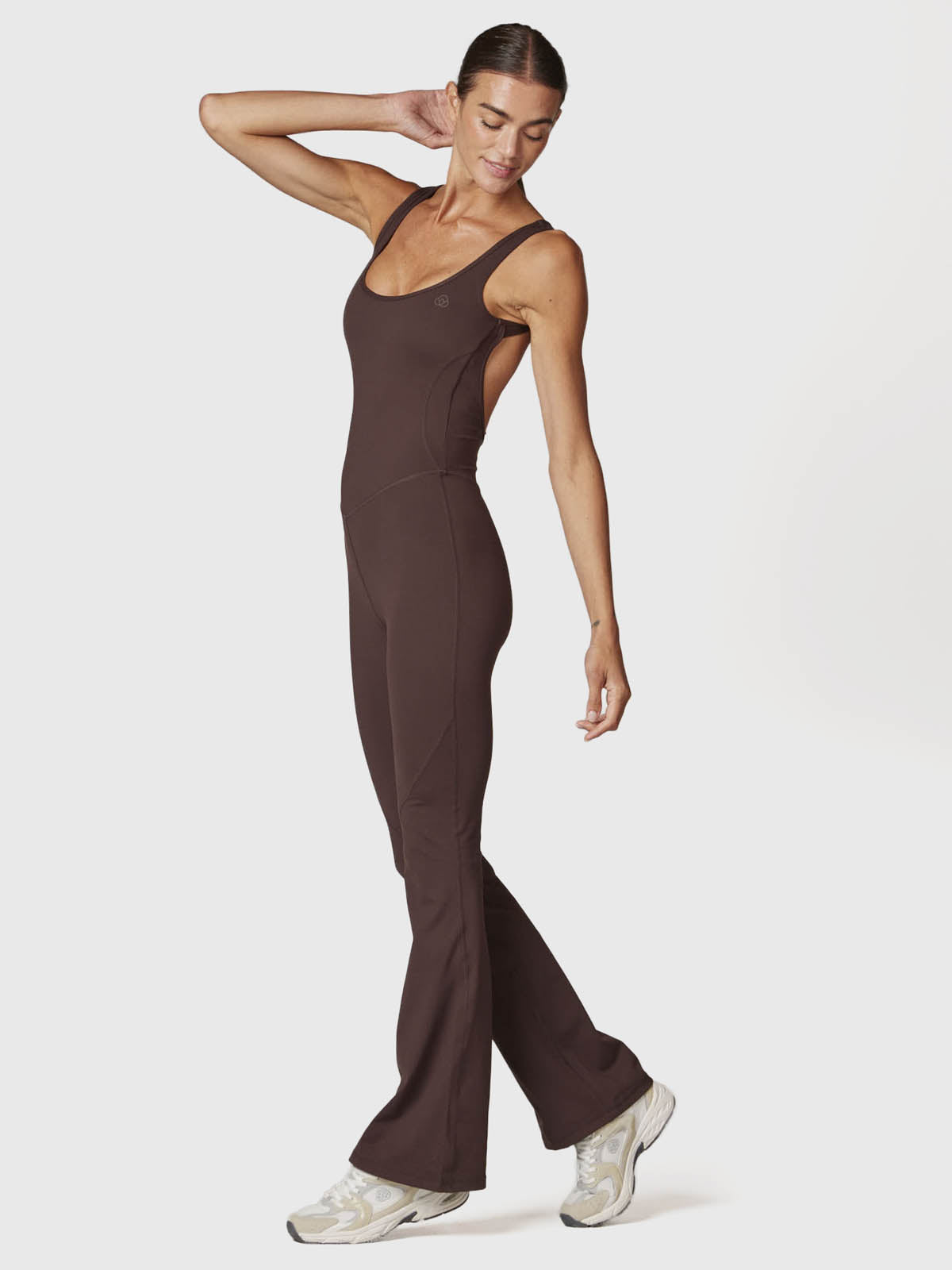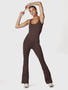 Mono largo de tirantes confeccionado en tejido suave y elástico que se adapta al cuerpo ofreciendo un ajuste cómodo y favorecedor. Su espalda abierta aporta un toque moderno y elegante, mientras que las piernas ligeramente anchas permiten libertad de movimiento en cada paso. Versátil y funcional, perfecto tanto para entrenamientos como para tus actividades del día a día.